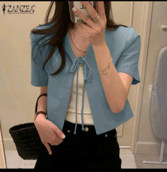 [DS][IZZA][247-180-0] ZANKEA KOREAN STYLE WOMENS BLAZER OUTFIT OL SHORT SLEEVE STAND COLLOAR LACE UP SUIT COATS (Z06)